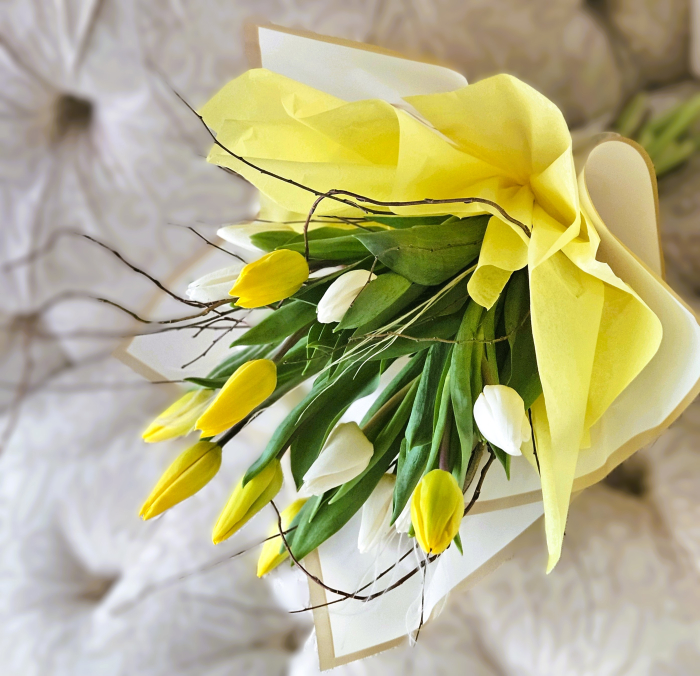 Buchet 15 lalele albe și galbene românești