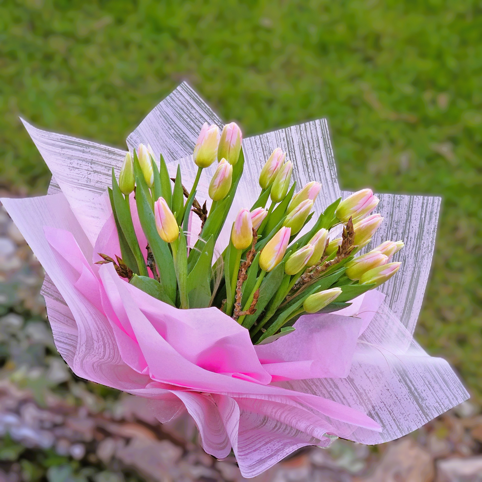 Buchet 25 lalele roz românești